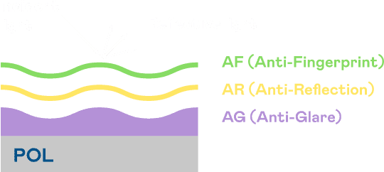 A.R.T.Wepay光电发展出独家的表面处理跟多层镀膜技术,,让外部光线照射到显示器表面时所产生的反射光大幅降低。。。 |