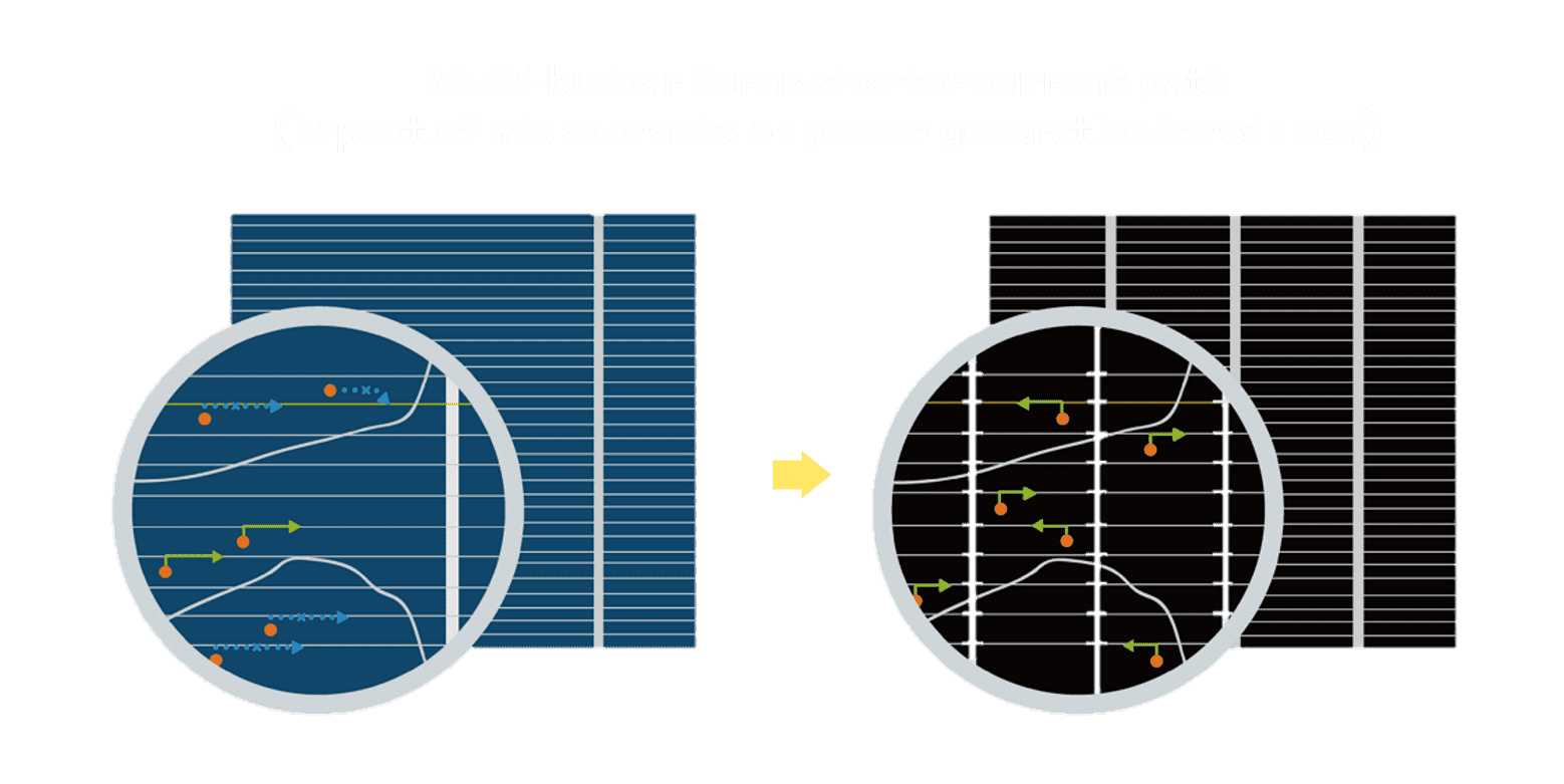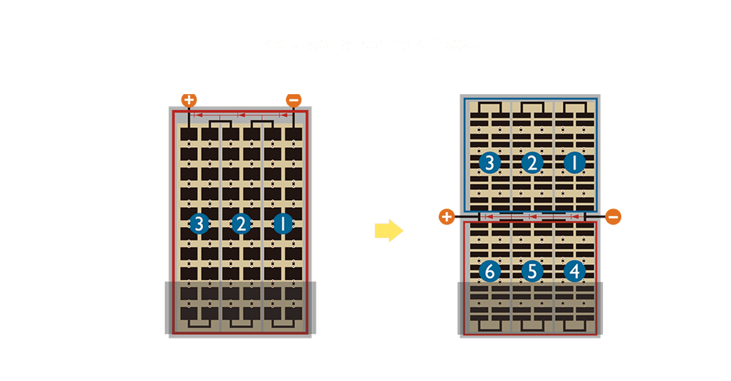 优化的太阳能电池结构设计,,不仅提高电流收集效率,,,,降低电池隐裂,,使太阳能模组长期维持稳定的输出效能,,,,提高营运效益。。