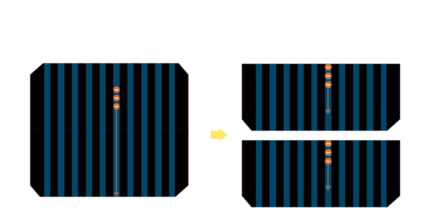 - 结合半切电池,,,,降低遮阴影响、、提升模组抗隐裂能力、、并减少电阻损耗,,,进一步提升模组发电效能。。。