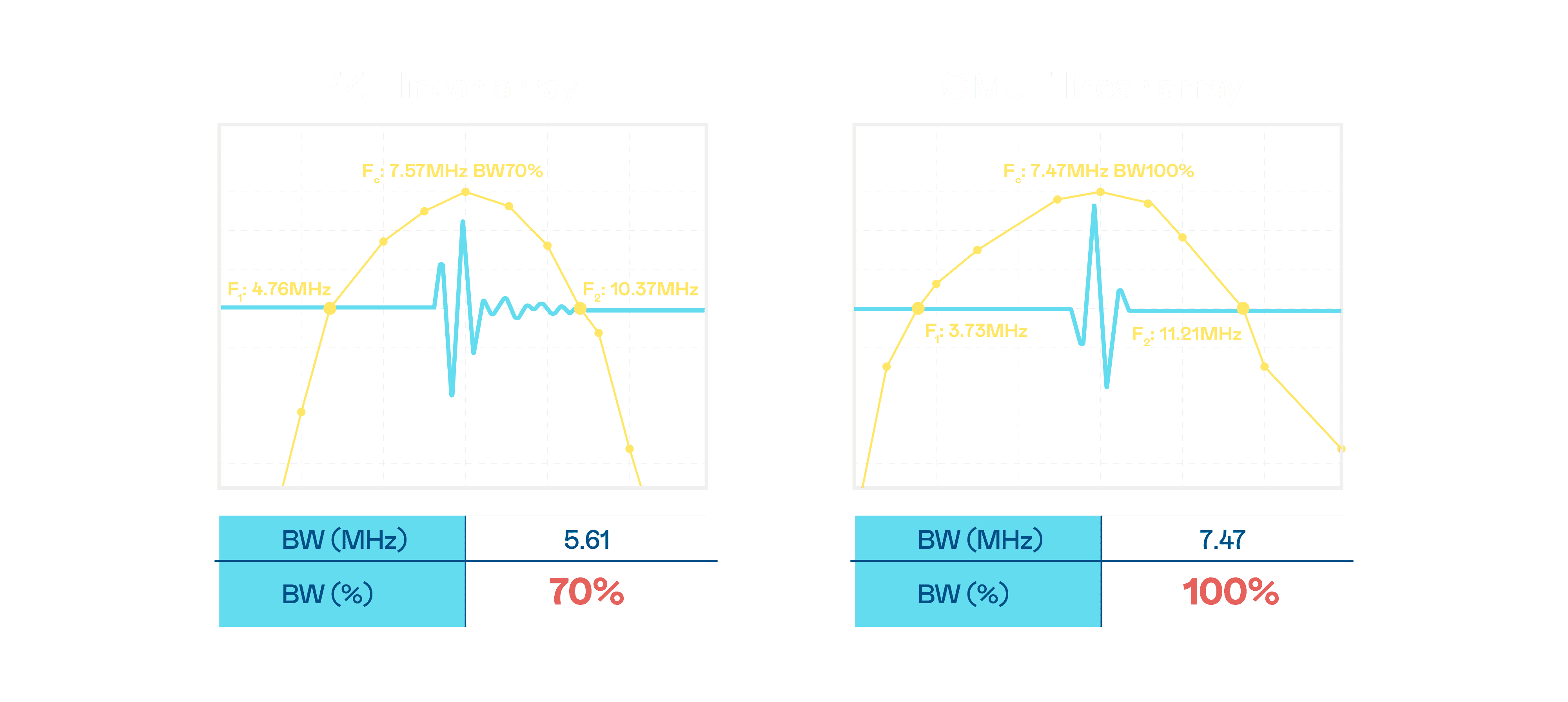 超音波影像的解析度高低,,,首先取决于探头能发出的讯号频宽。。Wepay CMUT 可提供高清晰的超音波讯号,,提供高频宽、、、、高灵敏度、、、、影像纹理细节更高的超音波影像,,,,协助医护人员缩短影像判读时间及利用精准的医疗影像进行诊断。。。